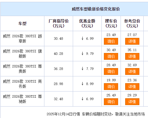 近期车市最劲爆的消息,莫过于上汽大众威然的“价格跳水”。这款中大型MPV抛出最高12.29万的优惠力度,旗舰版从40.28万直降至28万左右,部分地区叠加补贴后入门版裸车价仅17万级,堪称合资MPV市场的“价格屠夫”。