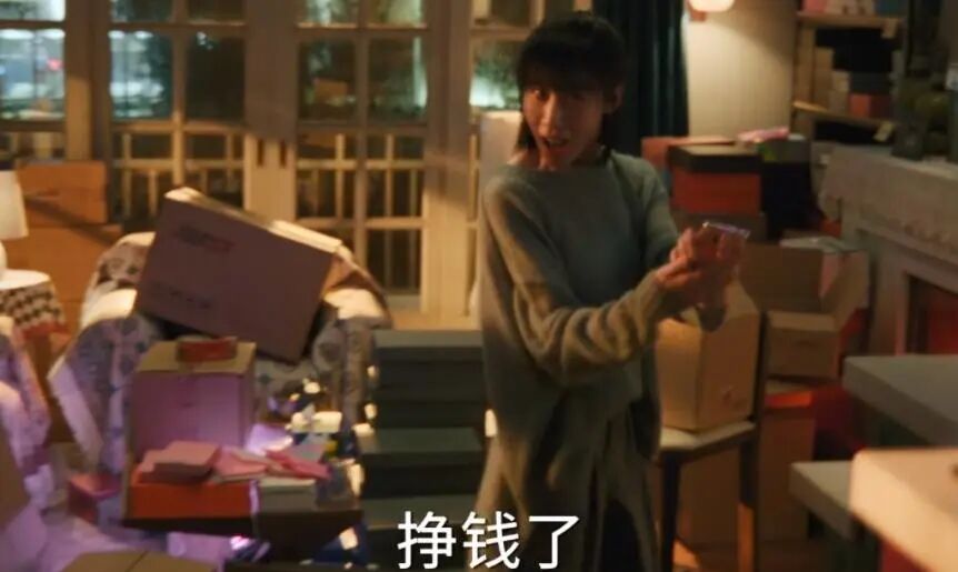 最让人诟病的就是付玉东给她买奢侈品包包的那场戏:她拿到包后,先是又蹦又跳地转了好几圈。