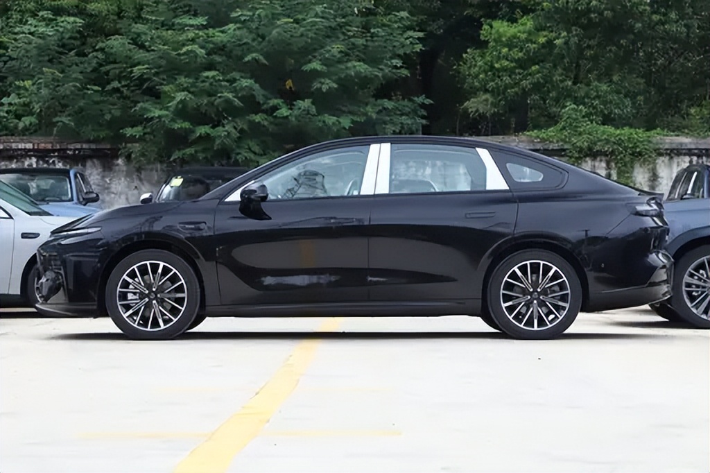 从侧面看,B01的比例相当协调。短前悬、长轴距设计赋予车辆更修长的姿态。溜背式车顶曲线平滑过渡至尾部,不仅使侧面线条更优雅,也有效改善风阻表现。官方公布的风阻系数低至0.197Cd,在同级车中处于较优水平。车门采用隐藏式把手,点亮车灯或解锁时自动弹出,兼顾科技感与空气动力性能。腰线自前翼子板延伸至尾灯,勾勒出简洁而富有力量的姿态,提供18英寸规格,造型简约但层次感强。整体视觉呈现出“稳中带动”的风格,既不激进,又具辨识度,符合年轻家庭用户对低调美学的追求。